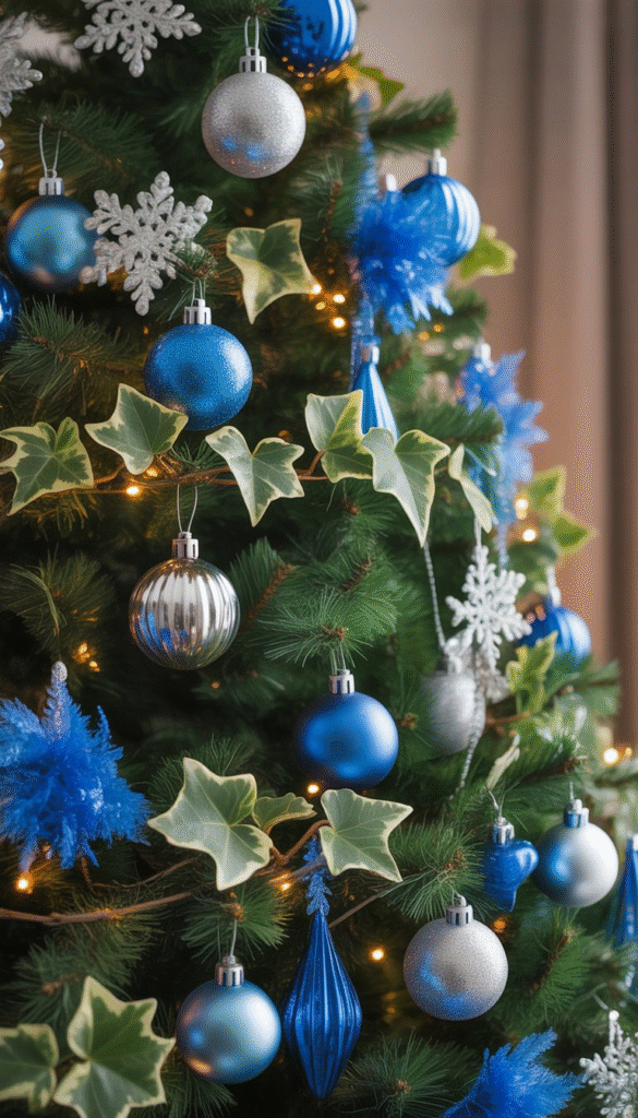 You can create a fresh look with icy blue and silver on your tree. Silver ornaments add shine, while light blue gives a cool, wintry feel. Adding sparkly touches like tinsel or ribbon makes your tree stand out without being too bright. This combo feels clean and elegant.
