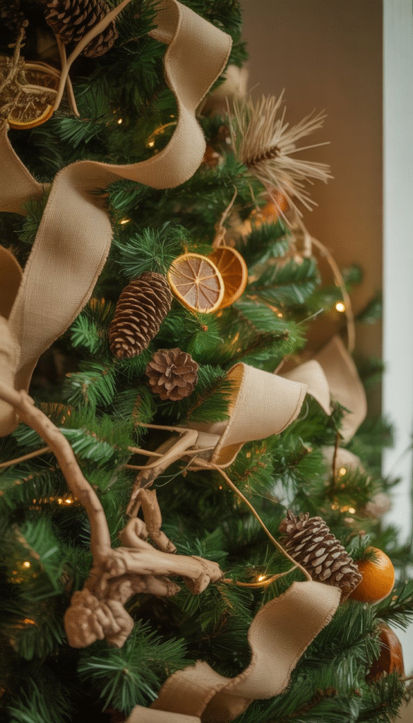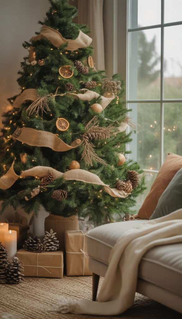 You can use deep greens with burlap for a simple, cozy look. Add pinecones, dried oranges, and twine for a natural touch. This palette feels warm and earthy, perfect for a relaxed, rustic Christmas tree style.