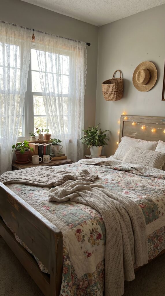 Introduce handmade-feeling textiles like crochet blankets, embroidered pillowcases, or lace-trimmed linens to bring softness and nostalgia. Even one crocheted cushion or a runner at the foot of the bed adds instant charm. The tiny stitches and textures make the room feel tender and thoughtfully put together.