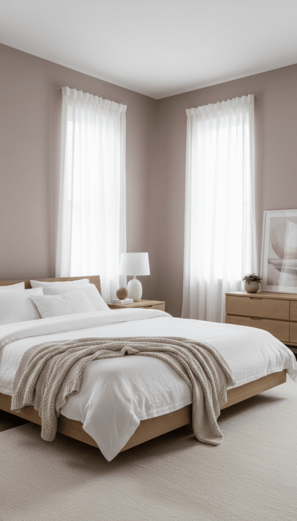 Dusty pink has quietly become one of the most versatile bedroom colors. It’s softer than bright pink, warmer than gray, and instantly adds a sense of calm, grown-up elegance.