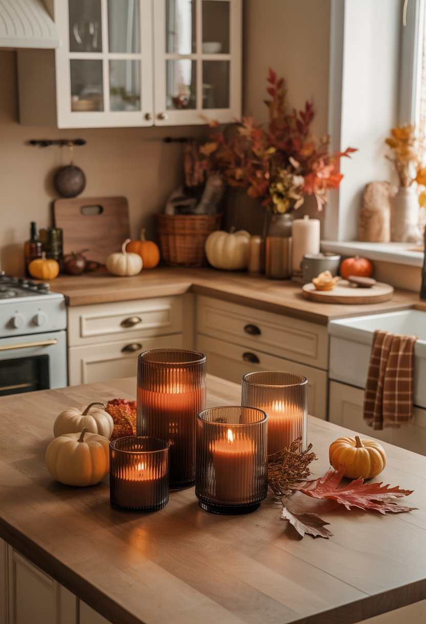 You can add warmth to your kitchen with fall-scented candles. Apple cinnamon is a popular choice that brings a cozy vibe.