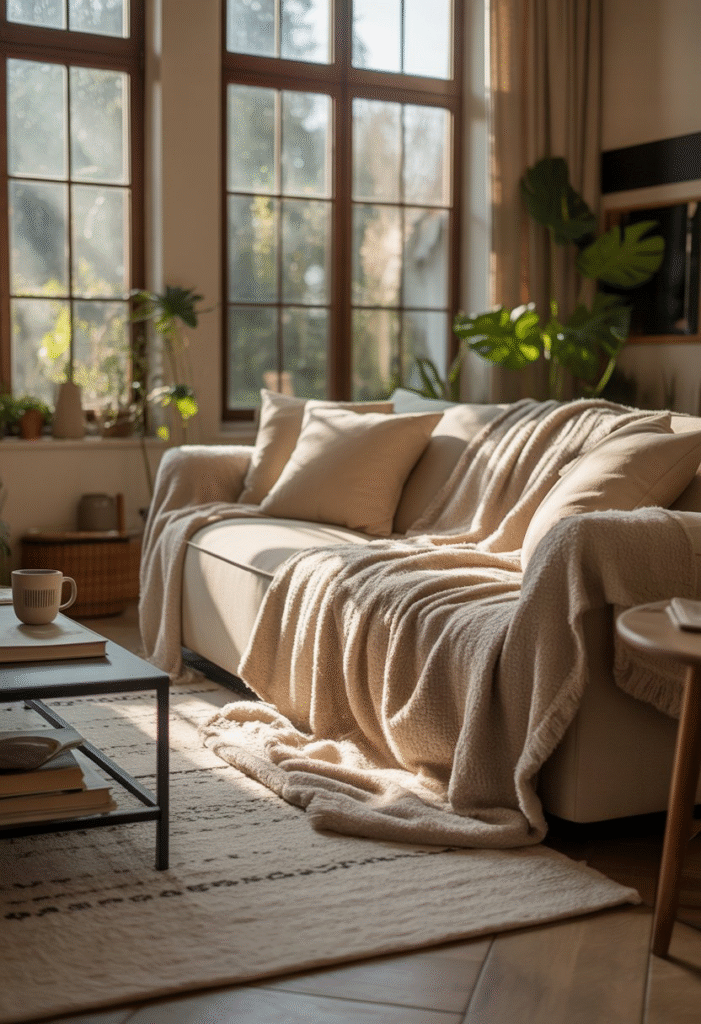 Change your throws and pillows with the seasons. Lighter fabrics like linen or cotton in summer, and chunkier knits or faux fur in winter. It makes your space feel fresh without a full furniture overhaul.