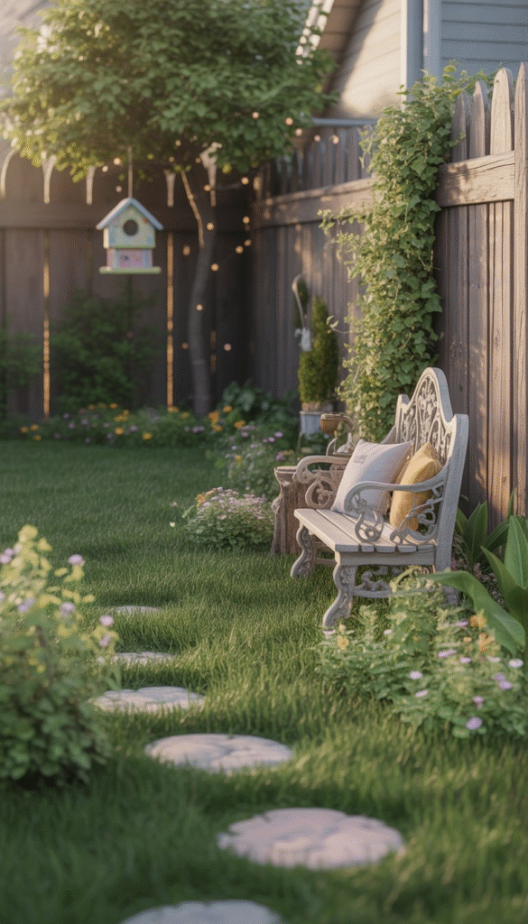 You can also add lanterns on posts or hooks to light pathways and create a warm, inviting glow at night. These touches make your yard feel like a fairytale come to life.