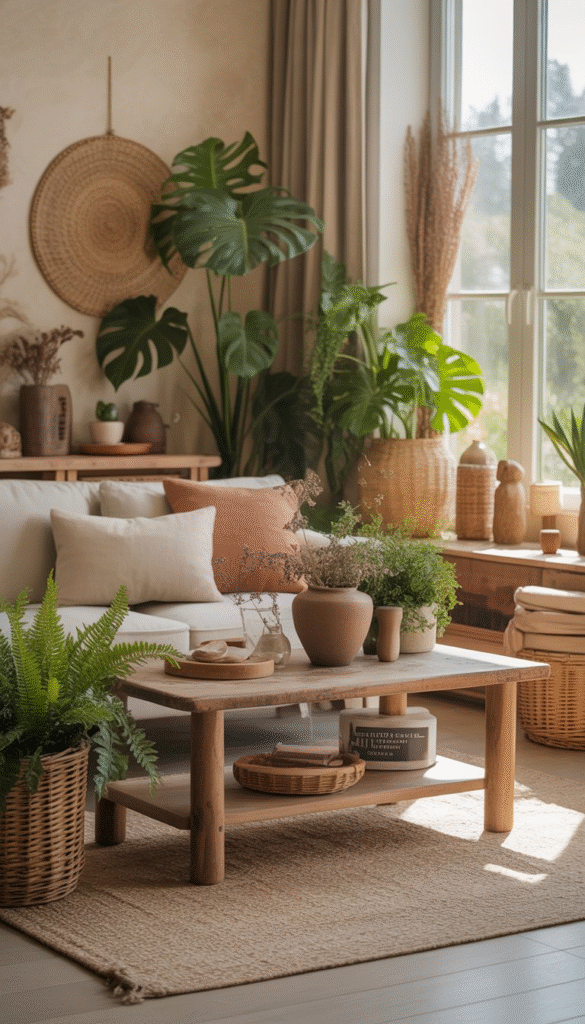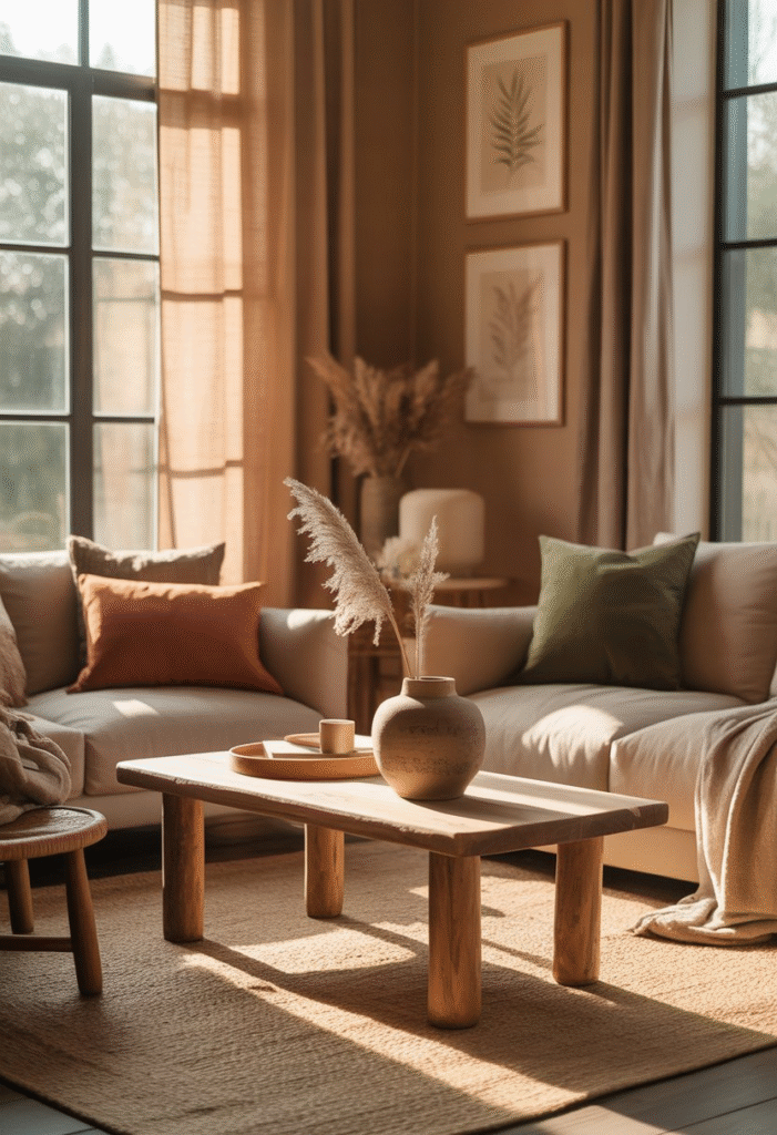 Use natural materials like wood, stone, and clay to give your space a grounded, warm feel. These organic materials bring texture and depth, making rooms feel inviting.