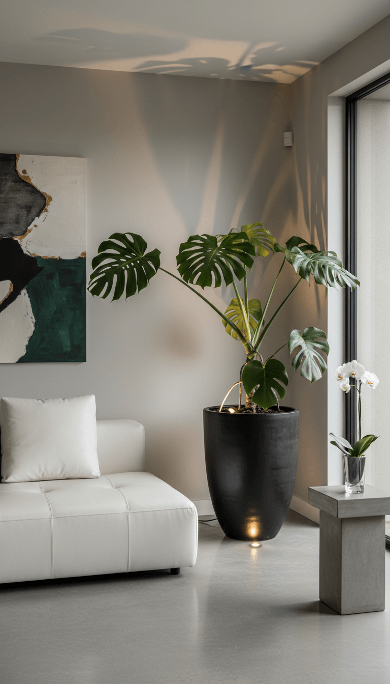 If you prefer clean lines and a calm aesthetic, a minimalist plant corner keeps things simple yet striking. Focus on a few sculptural plants instead of a big collection.