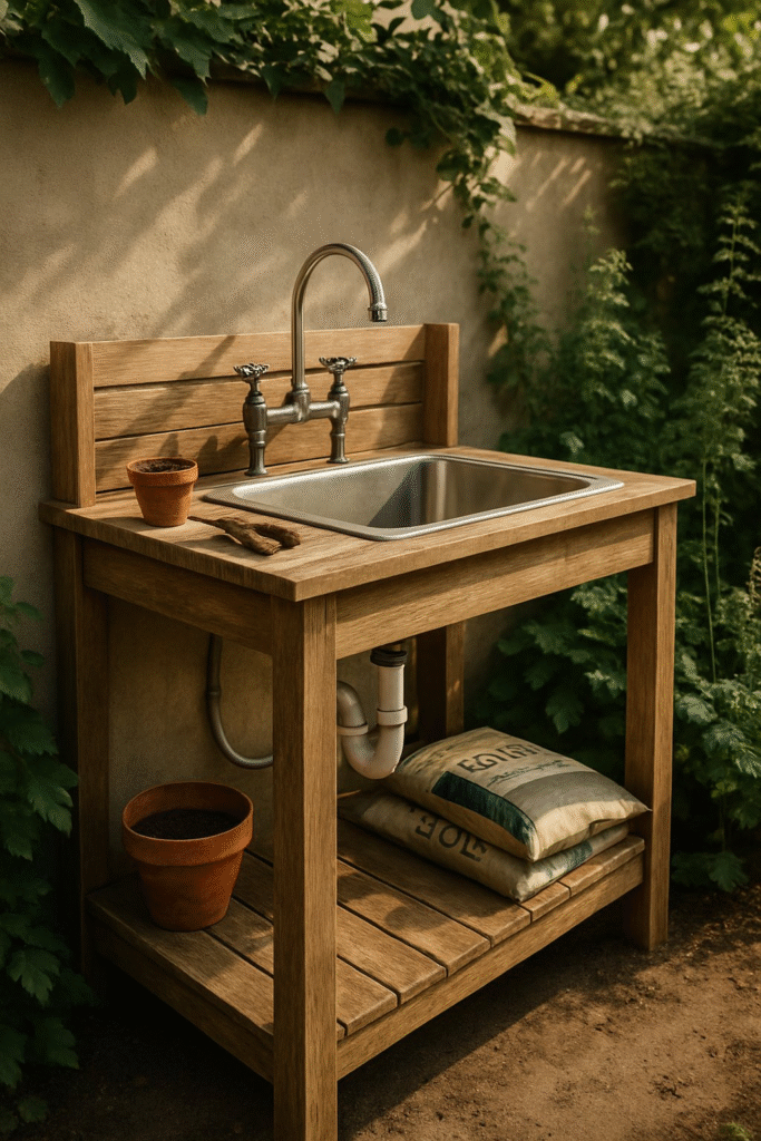 A built-in sink makes cleaning up easy. You can rinse tools or wash dirt off plants without leaving your workspace.