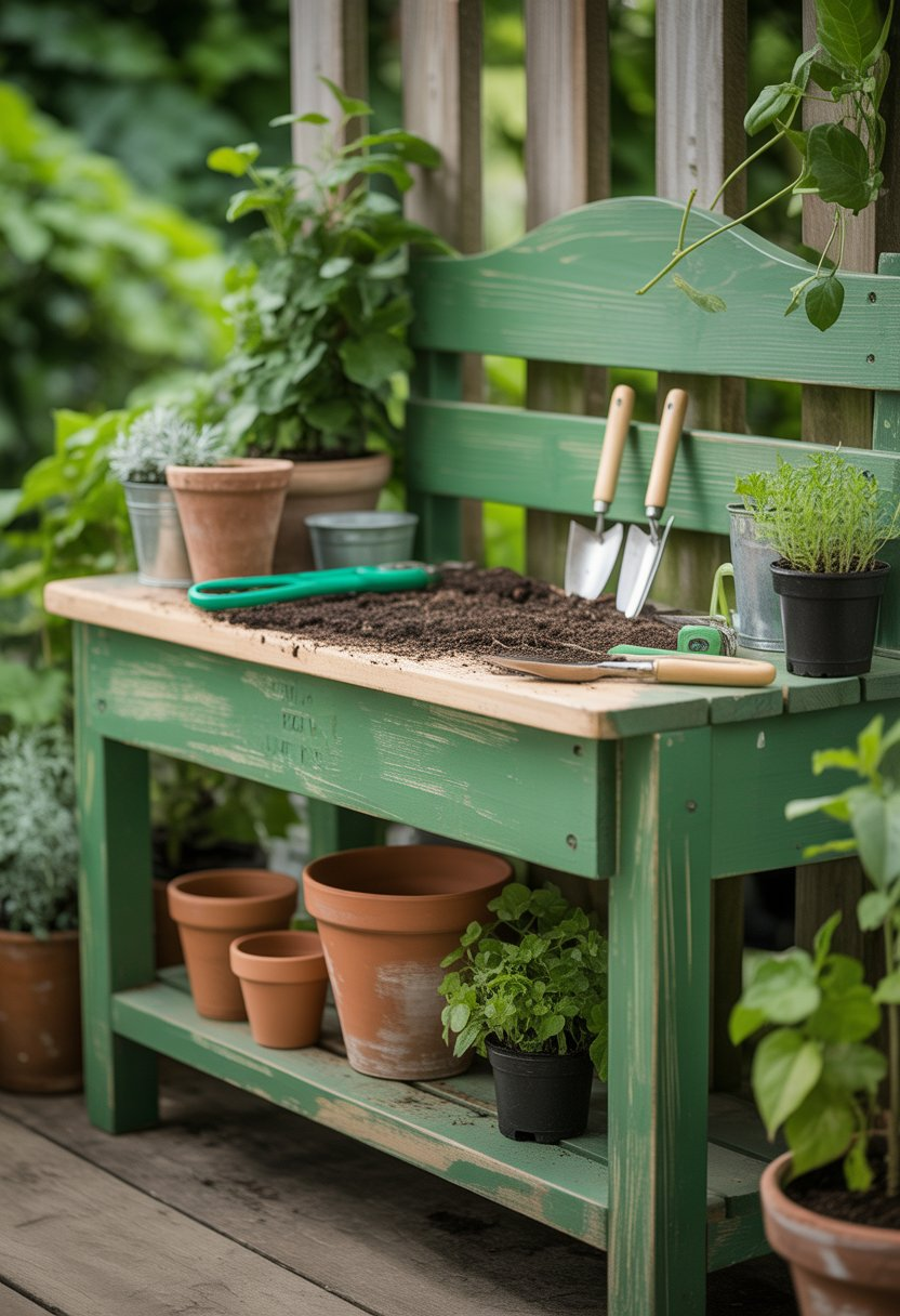You can pick a foldable potting bench to save space when not in use. It usually has a strong frame and a work surface that folds down flat. Look for materials that resist weather, like treated wood or metal, so it lasts outside.