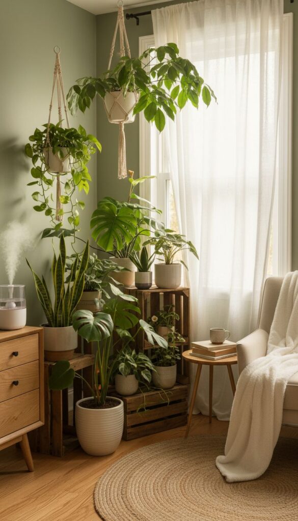 Action tip: Add one cozy element (like a warm lamp or soft rug) right next to your plant corner to instantly make it feel like a dedicated relaxation zone.