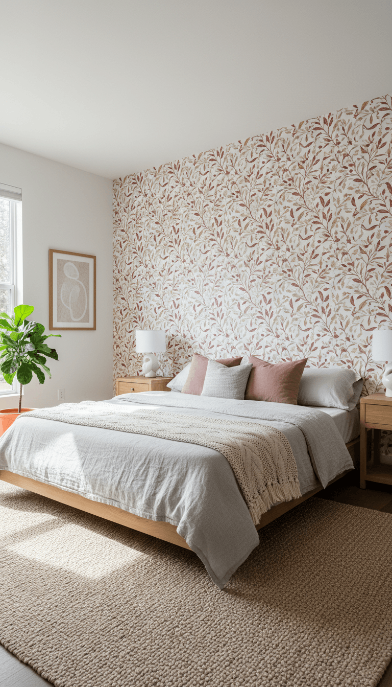 An accent wall in wallpaper can completely change a room with zero furniture upgrades. It’s especially impactful in entryways, behind beds, and in dining areas.