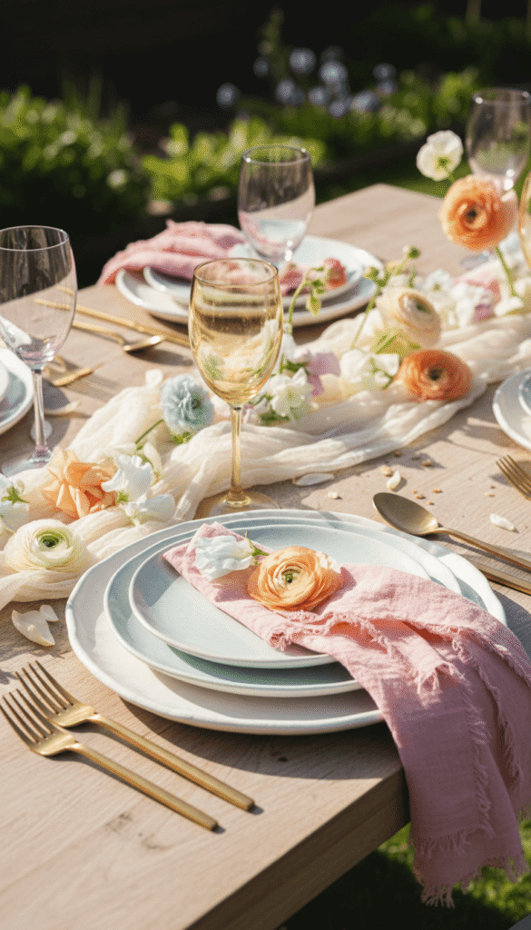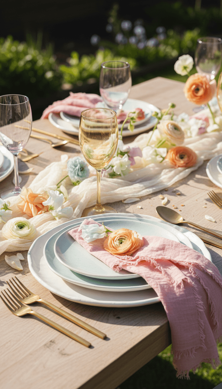 - Choose napkins in soft pastels like blush, sage, or sky blue