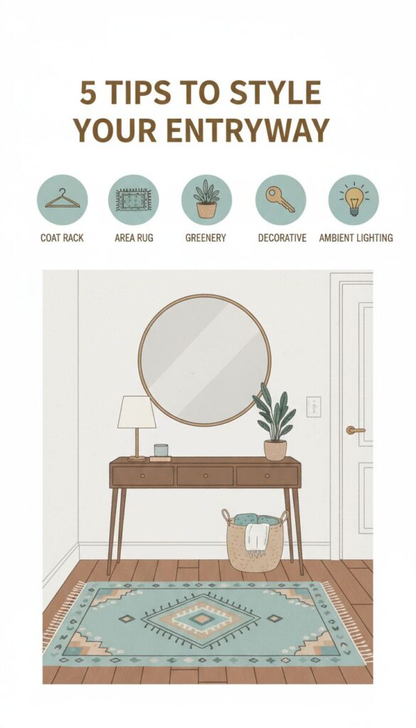 Styling your entryway is about blending function and beauty so the space feels both practical and welcoming. By defining the area with a rug, maximizing storage, using vertical organization, layering lighting with a mirror, and adding personal decor and greenery, you can transform even the smallest entry into a polished, hardworking zone.